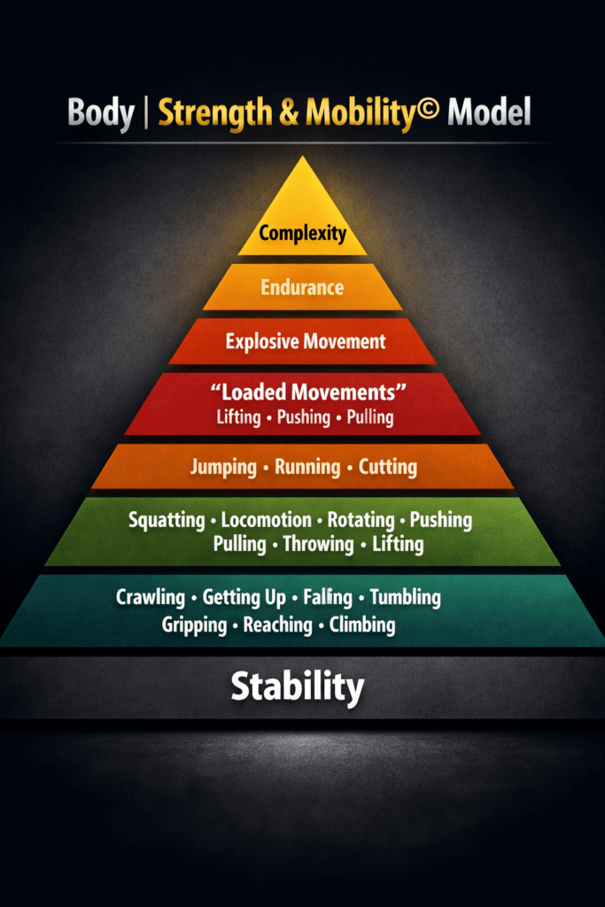 The Body | Strength & Mobility© Model is designed to build strong, mobile bodies that last — not just for now, but for life.